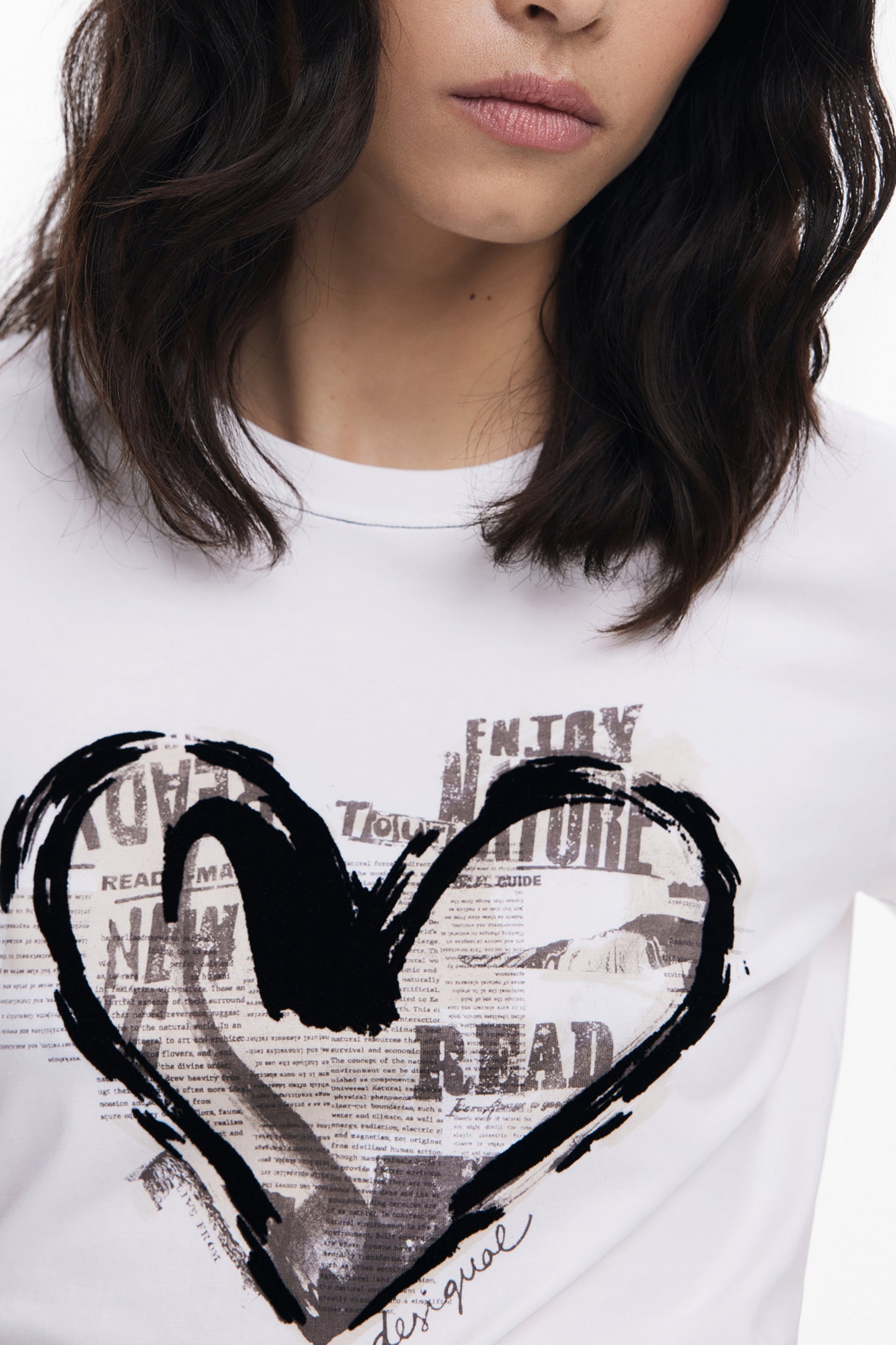 25WWTK04_BI1000 – Trendiges Weißes Kurzarmshirt für Damen mit Print & Rundhals – Größe: XS, S, M, L, XL – Farbe: Bianco