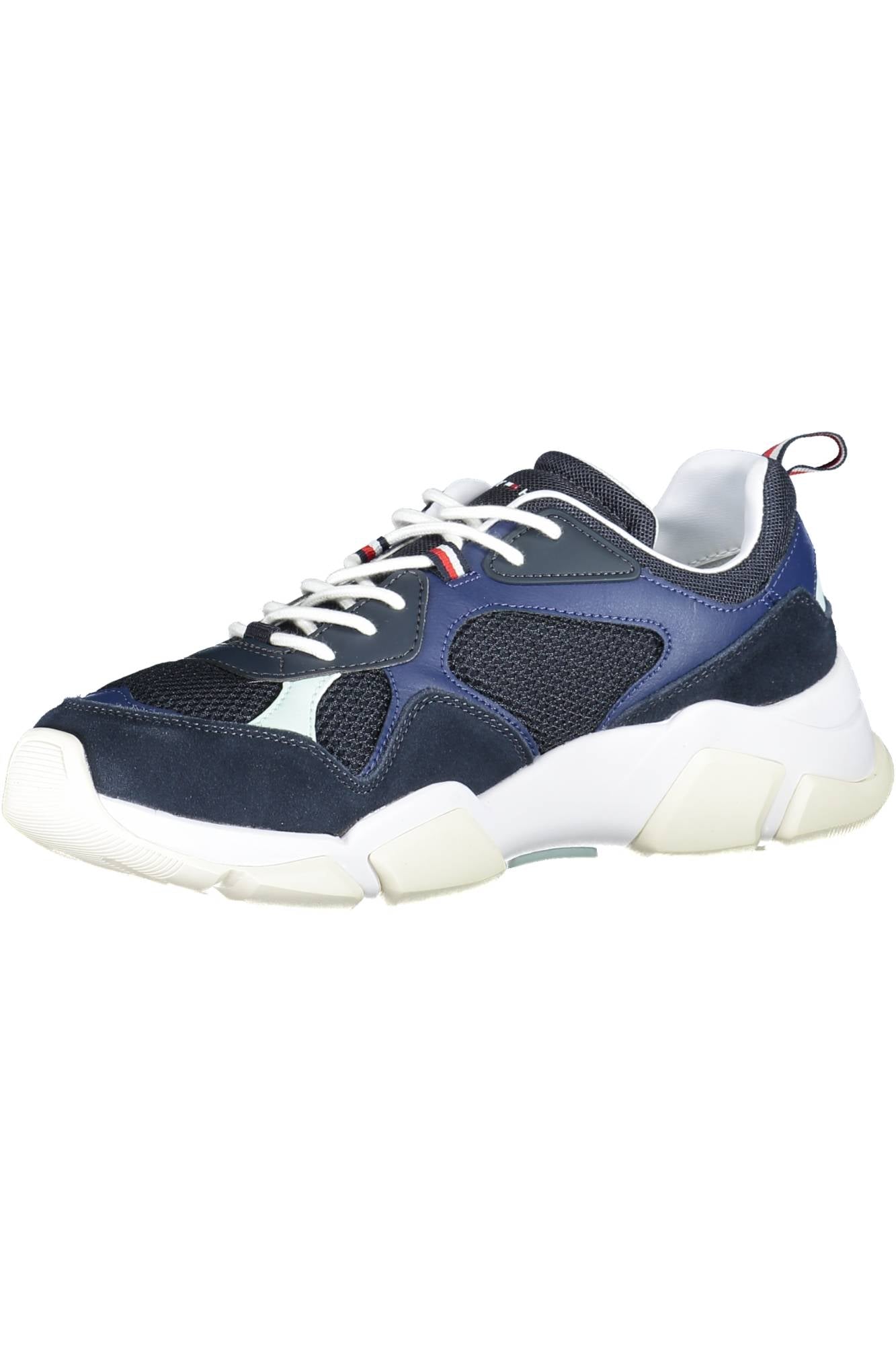 Eleganter blauer Herrensportschuh mit Kontrastdetails und Logo-Highlight
