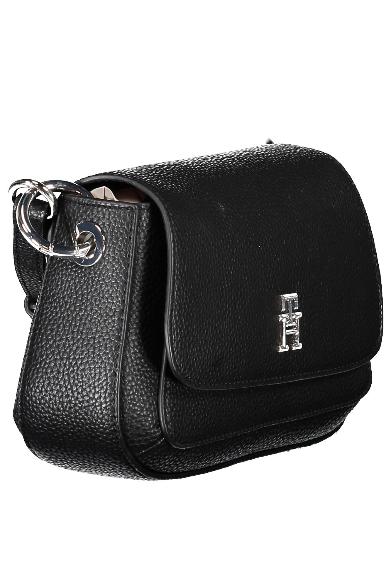 Elegante schwarze Damenschultertasche mit Druckknopf und Außentasche